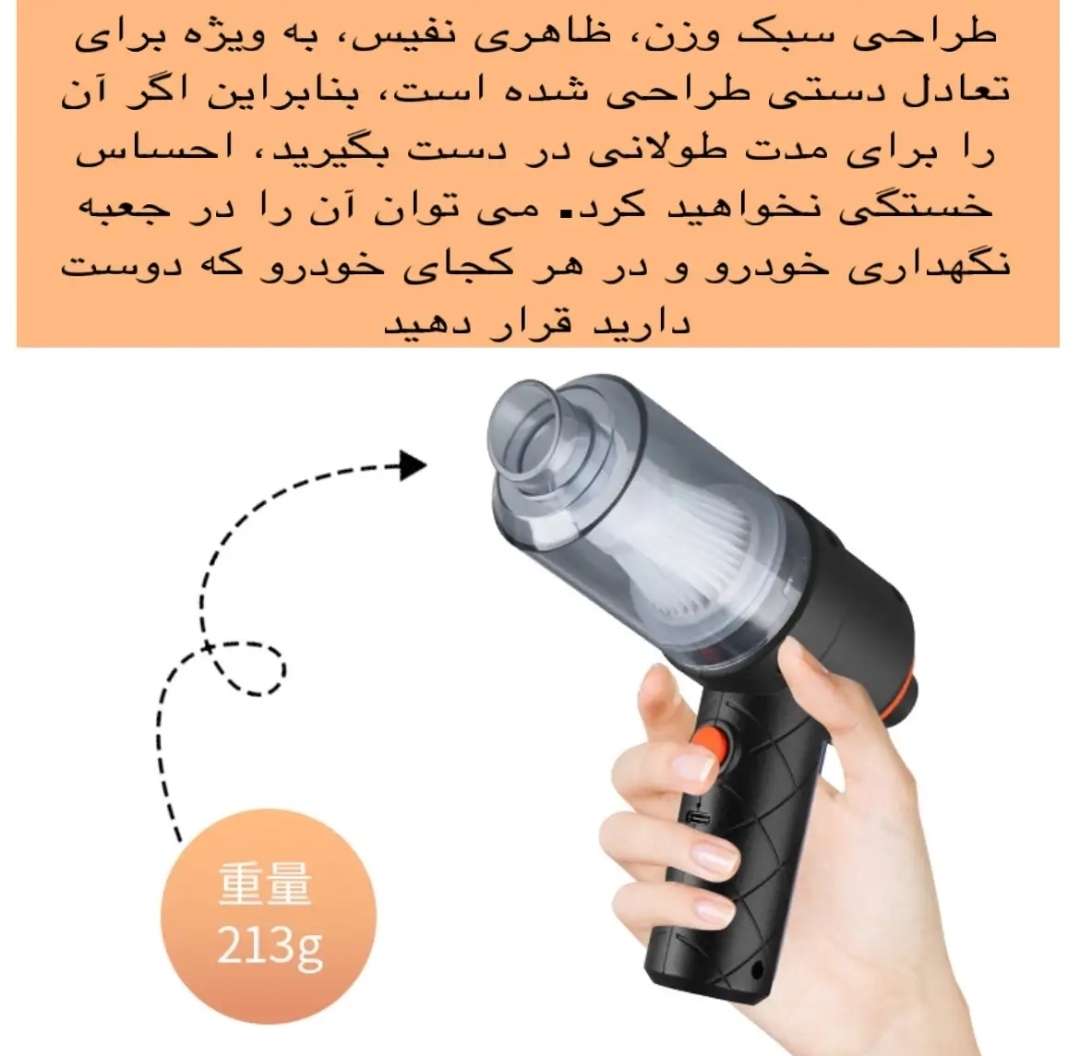 جارو شارژی ماشین ترند دوکارس یکی از ترندهای پرفروش بازار است که با قدرت مکش بسیار بالا، تمام گرد و غبار، خوردهریزها، مو، خاک صندلی و زبالههای ریز داخل خودرو را بهطور کامل جمع میکند.