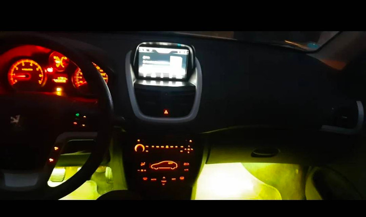 این اتمسفر لایت با ولتاژ ۱۲ ولت طراحی شده و هر LED آن دارای طول ۱۲ سانتیمتر است که بهراحتی در زیر داشبورد و زیر صندلیهای جلو نصب میشود. وجود سنسور صدا باعث میشود نورپردازی با صدای موسیقی پخششده از سیستم صوتی خودرو هماهنگ شده و افکتهای جذاب ایجاد کند.
