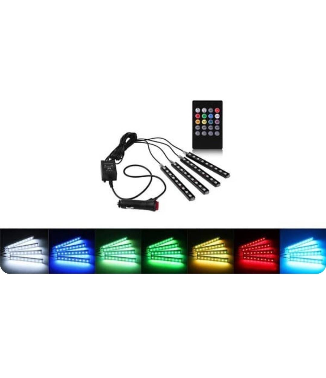 اتصال برق محصول از طریق فندکی خودرو انجام میشود و هیچ نیازی به دستکاری سیمکشی فابریک ماشین ندارد. همچنین با استفاده از ریموت کنترل میتوانید رنگهای LED RGB، افکتهای نوری مختلف و حتی شدت نور را بهدلخواه تنظیم کنید.